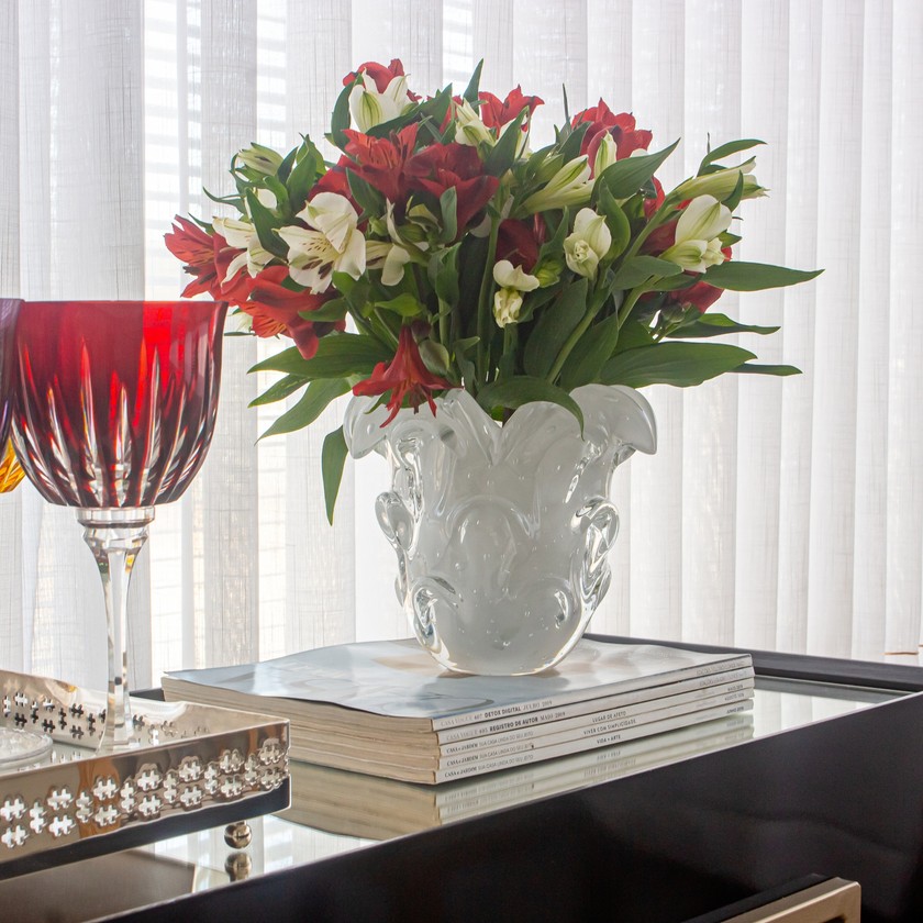 Imponente e sofisticado, o vaso Traun em Cristal de Murano traz toda nobreza em seu design. Um vaso alto e generoso, perfeito para decorar o seu hall de entreda ou um belo aparador, e também valorizar aquele canto da casa que merece toda a atenção.