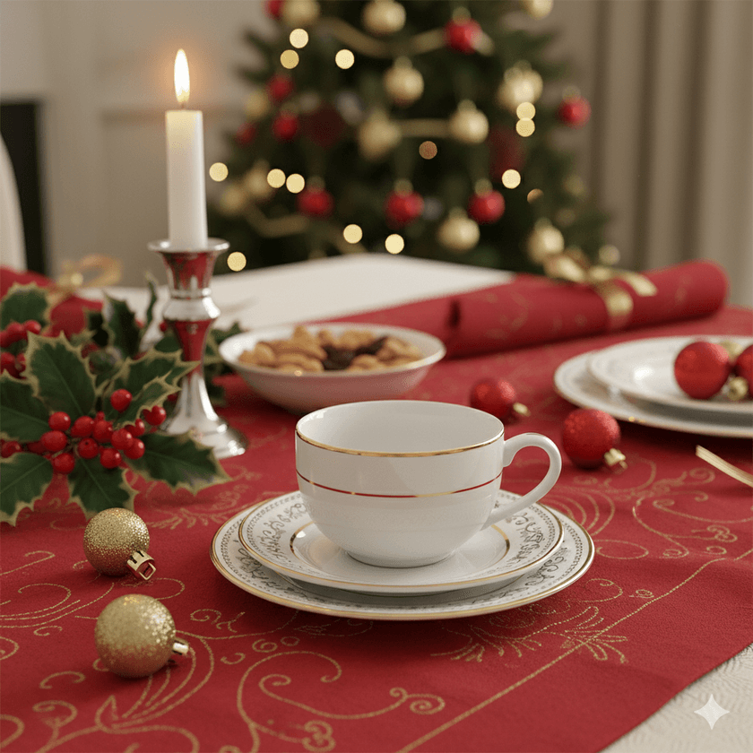 Desfrute seu Natal com a louça Classic Christmas. Trazendo o encanto e o brilho deste momento tão especial, para suas recepções, comemorando com elegância e a qualidade da cerâmica filetada a ouro. Enriqueça sua experiência gastronômica.