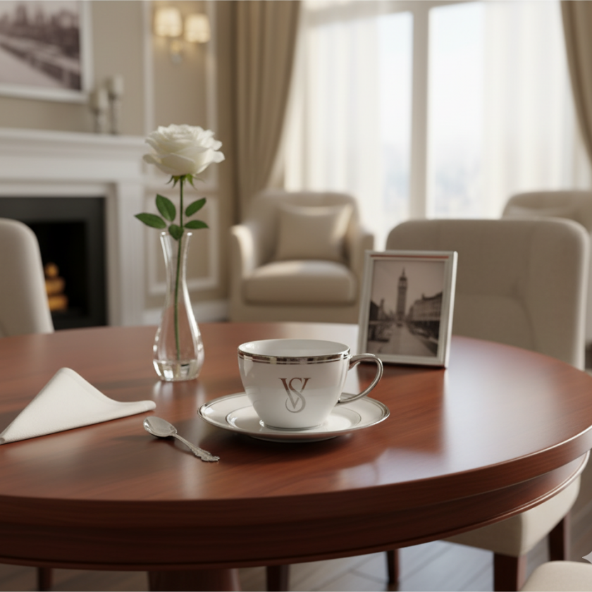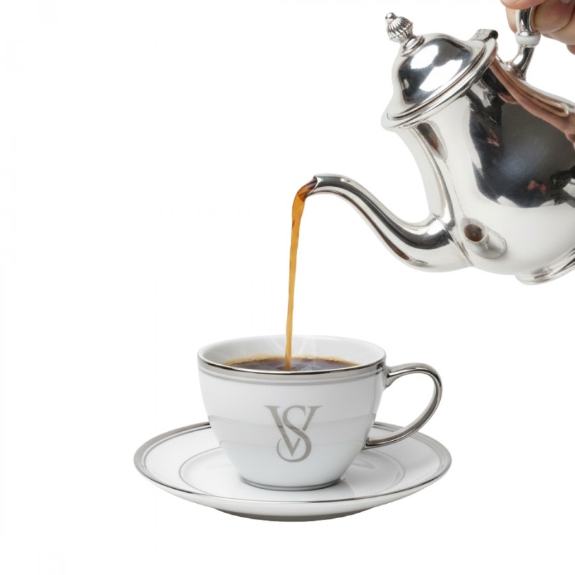 As xicaras e pires com filete e monograma em prata reflete a nobreza da porcelana branca em alta qualidade e resistência e com belíssimo acabamento que deixará sua mesa com um belo design, valorizando cada momento. A Porcelana alia o processo artesanal à tecnologia, trazendo visual marcante nas peças, resultado de um minucioso trabalho digital que ganha vida nas mãos experientes de quem as fabricam. Uma belíssima inspiração, um jeito simples e ao mesmo tempo sofisticado para compor uma mesa.