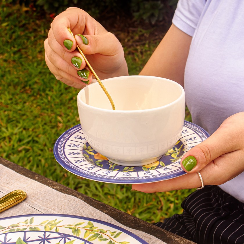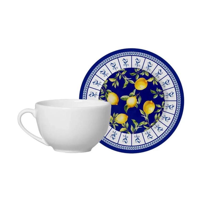 Esta xícara com pires não é apenas um recipiente, mas uma porta de entrada para momentos de tranquilidade e prazer, envoltos na aura ensolarada e refrescante do limão siciliano.